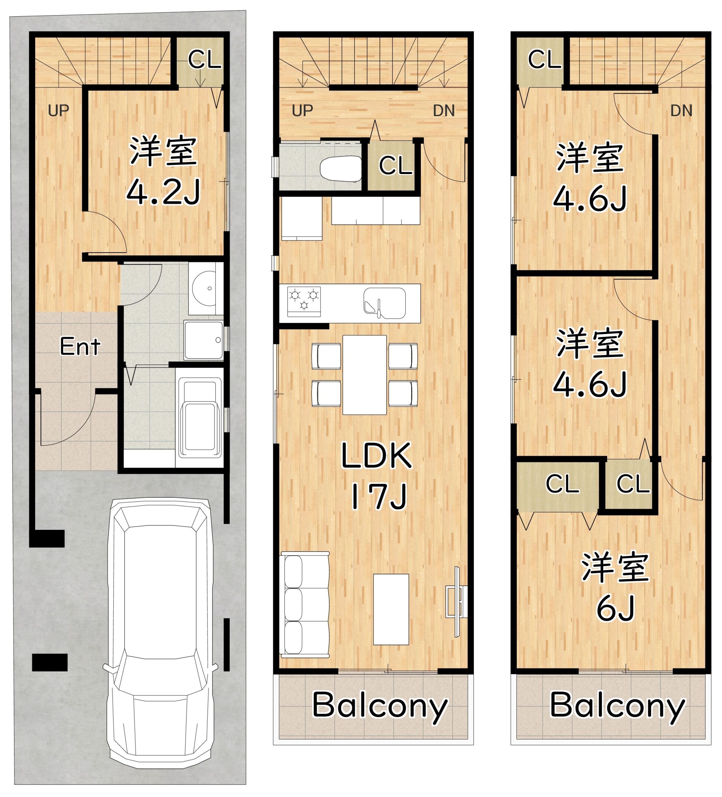 建物:114.34㎡~116.08㎡[34.58坪~35.11坪]/3LDK+S~4LDK